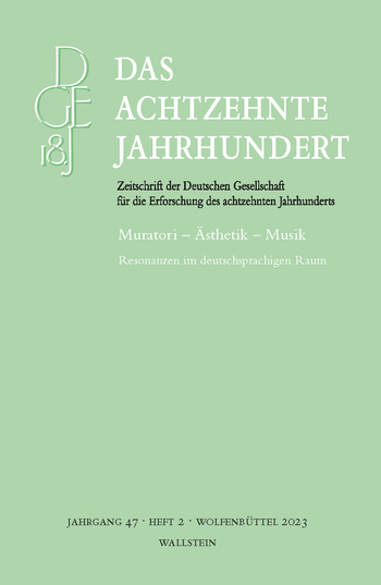 Soeben ist im Wallstein Verlag (Göttingen) der Band 47/2 der Zeitschrift 'Das achtzehnte Jahrhundert' erschienen. Es handelt sich um ein Schwerpunktheft zum italienischen Gelehrten Lodovico Antonio Muratori (1672-1750). Unter dem Titel: "Muratori - Ästhetik - Musik: Resonanzen im deutschsprachigen Raum" wird die herausragende, lange Zeit unterschätzte Rolle Muratoris für die (Musik-)Ästhetik des 18. Jahrhunderts untersucht. Der von Dr. Esma Cerkovnik konzipierte Band enthält Texte von Wolfgang Proß, Till Kinzel, Benedikt Leßmann, Harm Klueting, Carsten Zelle und Angelika Dreyer. (Dezember 2023)